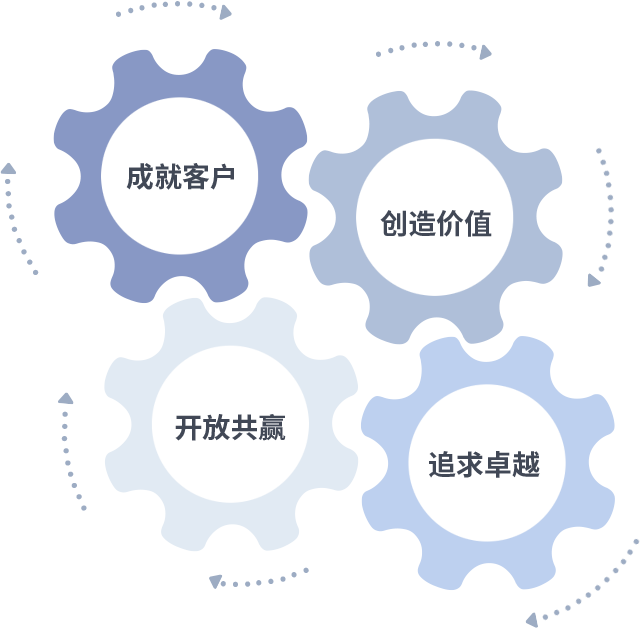 成就客户是一切决策的出发点,创造价值是衡量所有工作的标准,追求卓越是DB视讯做事做人的态度,开放共赢是DB视讯的格局也是最终的结果。价值观的齿轮环环相扣,推动着组织里的每个人不断向前。